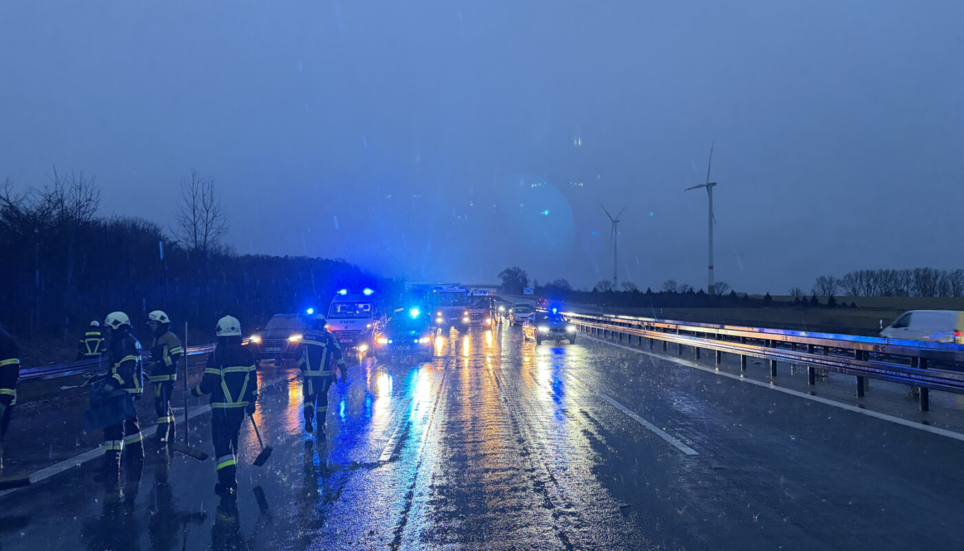 Einsätze 2026 Verkehrsunfall von Fabian Hofbeck16. Februar 202616. Februar 2026 Verkehrsunfall mit mehreren Fahrzeugen auf der BAB 9 in Richtung München. Einsatzbeginn: 16.02.2026 17:13 Einsatzende: 16.02.2026 18:20 Eingesetzte Fahrzeuge: LF10 (43/1)
